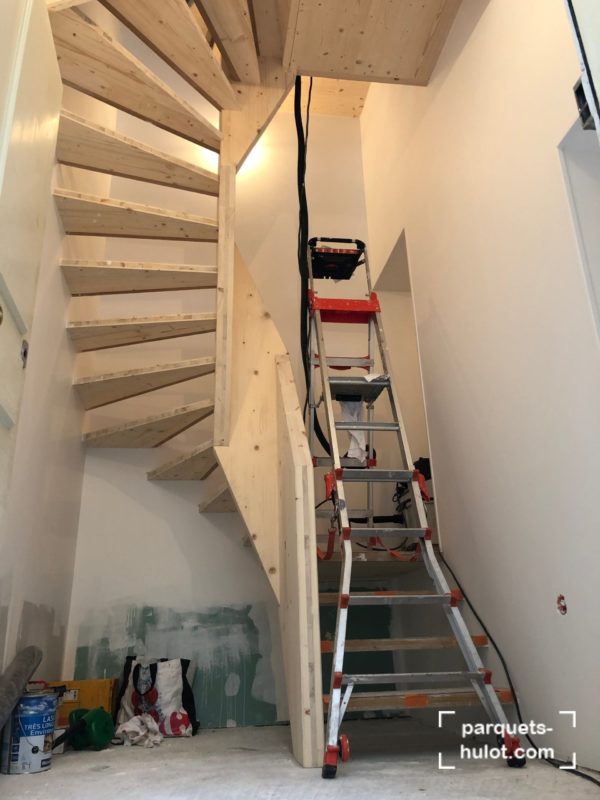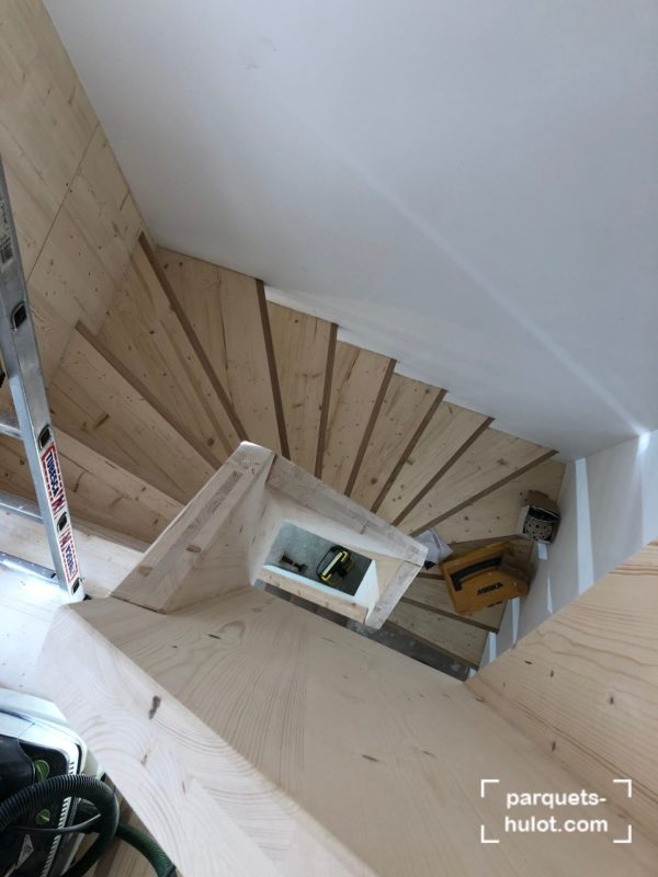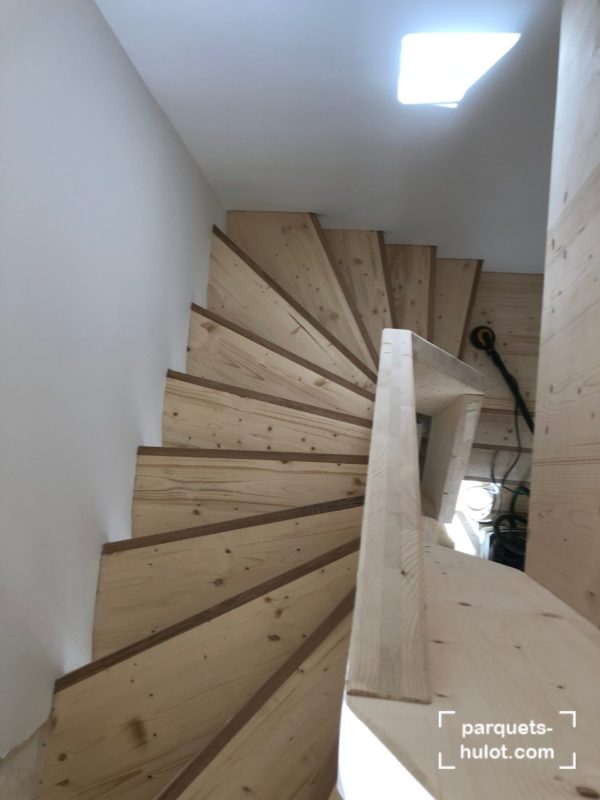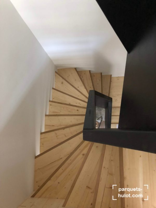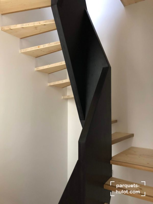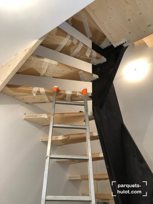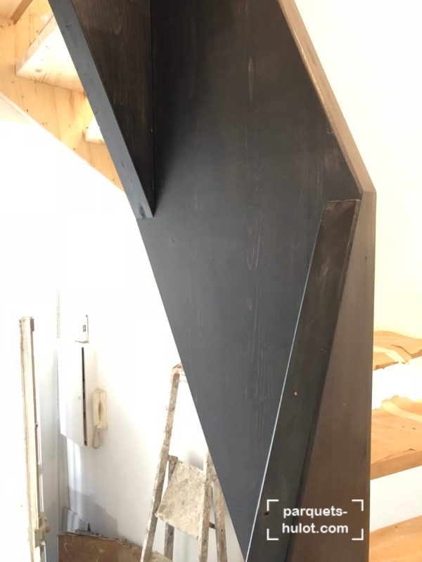 Rénovation d’un escalier avec ponçage et teinte en noire à Paris (75).